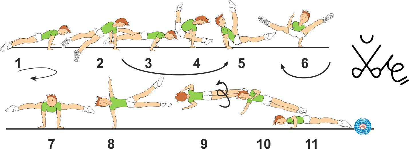 - Rotation of the body in support on the hands (one after the other) with a complete circle