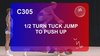 Value 0.5 1. A vertical jump with a 180° turns into Tuck. 2. Then the body inclines and prepares for landing. 3. Landing in Push up.